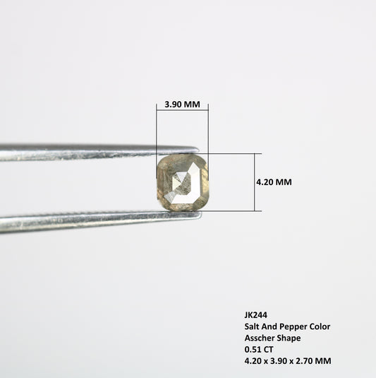 0.51 Carat 4.20 MM Asscher Shape Natural Salt And Pepper Diamond For Galaxy Ring.
