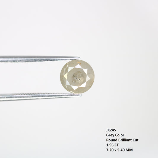 1.95 CT 7.20 MM Natural Grey Round Brilliant Cut Loose Diamond For Designer Ring