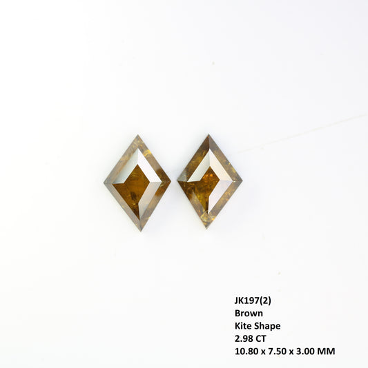 2.98 Carat Natural Rustic Brown Color Kite Shaped Diamond Pair For Wedding Ring