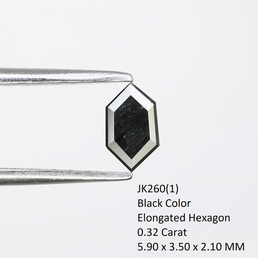 0.32 CT Elongated Hexagon Cut Black Diamond – Perfect for Engagement Rings | Unique Elongated Black Hexagon Diamond