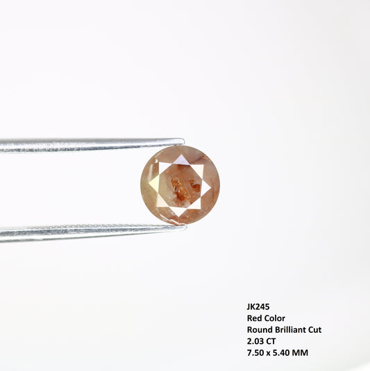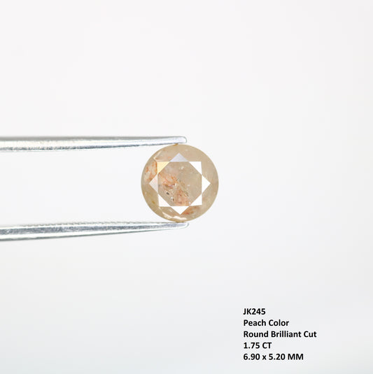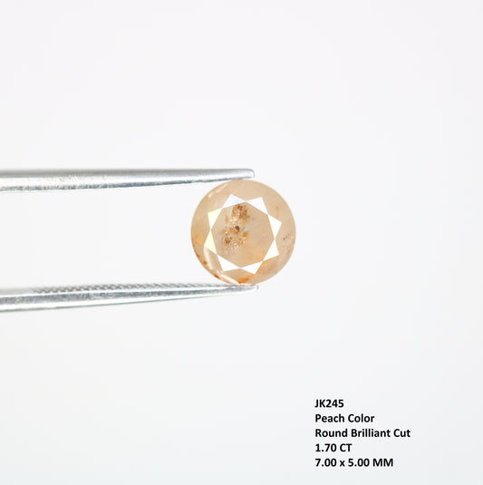 1.75 CT Fancy Peach Round Brilliant Cut 6.90 MM Diamond For Designer Jewelry