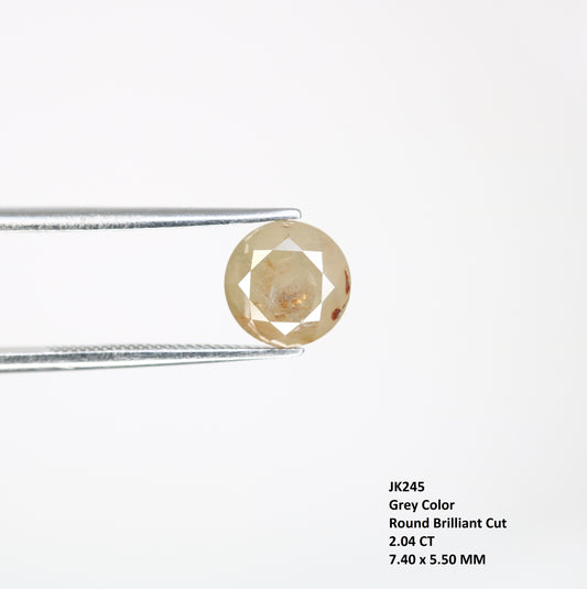 2.04 CT 7.40 MM Natural Grey Round Brilliant Cut Loose Diamond For Wedding Ring