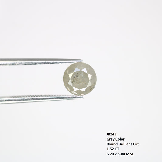 1.52 CT 6.70 MM Loose Grey Round Brilliant Cut Diamond For Engagement Ring