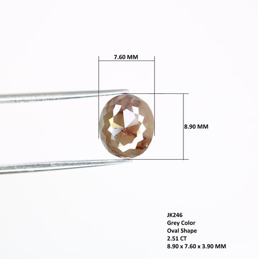 2.51 CT Oval Cut 8.90 MM Loose Grey Natural Diamond For Engagement Ring