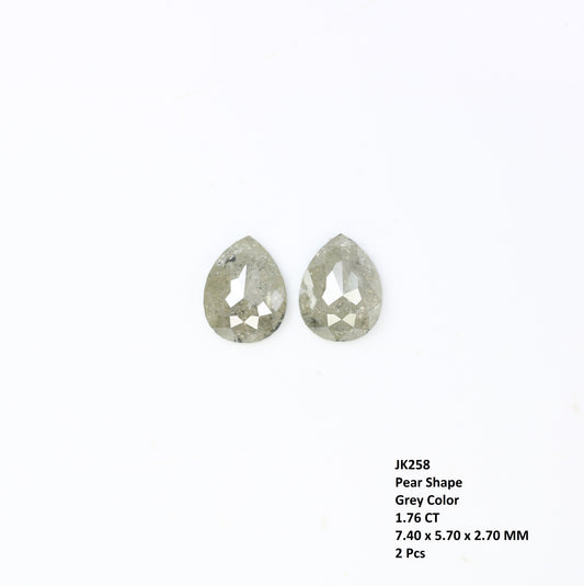 1.76 CT Pear Cut Natural Grey Loose Pair Diamond For Engagement Ring