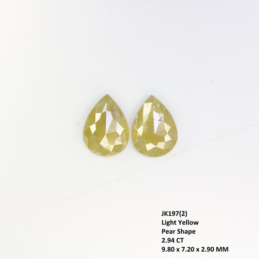 2.94 Carat Natural Yellow Rustic Diamond Pair Fancy Pear Shaped Diamond