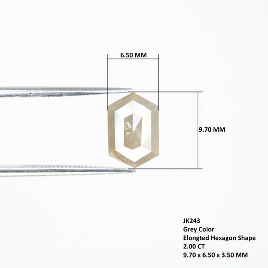 2.00 CT 9.70 MM Fancy Grey Elongated Hexagon Shape Diamond For Designer Jewelry