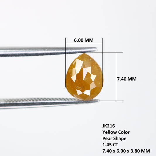1.45 Carat Pear Shaped Diamond Ring Natural Loose Rustic Yellow Diamond