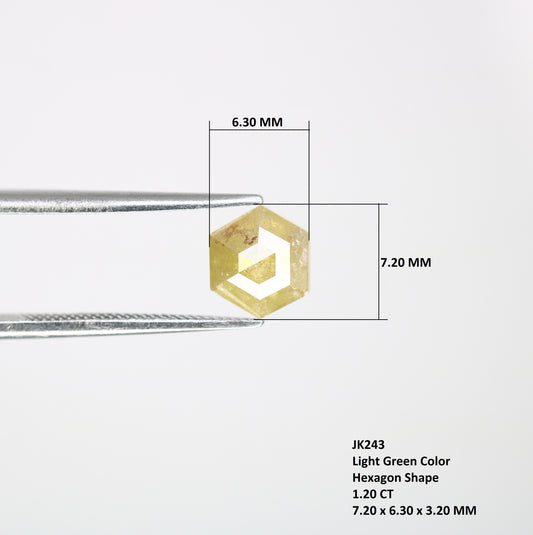 1.20 Carat Hexagon Cut 7.20 MM Fancy Light Green Color Diamond For Proposal Ring