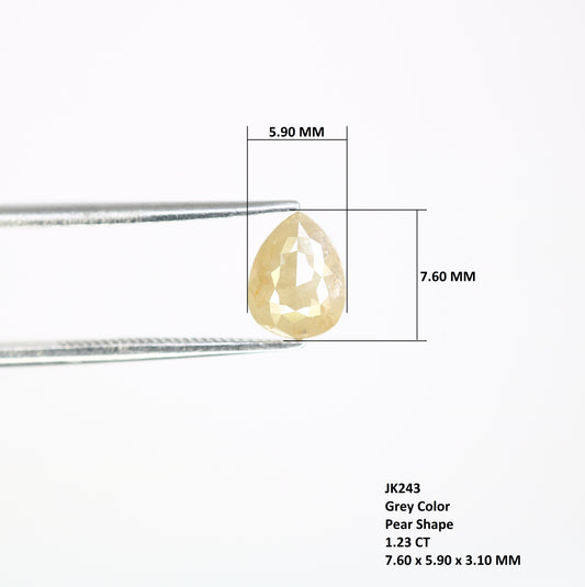 1.23 CT Natural Grey 7.60 MM Pear Shaped Loose Diamond For Fancy Ring