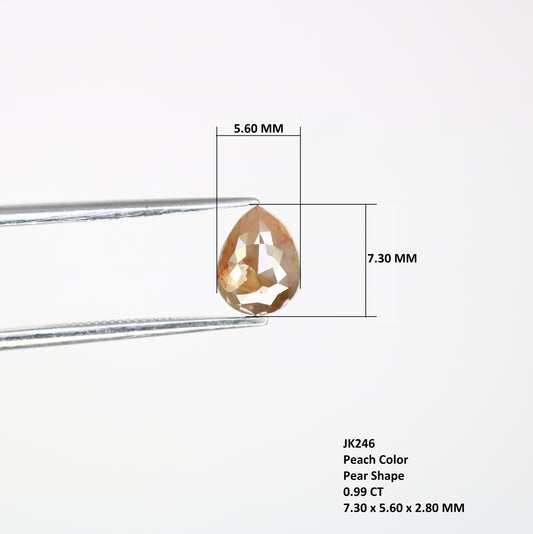 0.99 CT Natural Peach Loose Pear Cut 7.30 MM Diamond For Engagement Ring