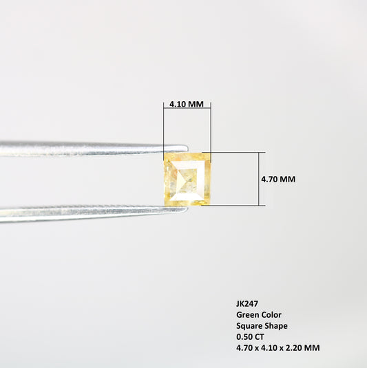 0.50 CT 4.7 x 4.1 MM Fancy Green Loose Square Shaped Rustic Diamond For Wedding Ring