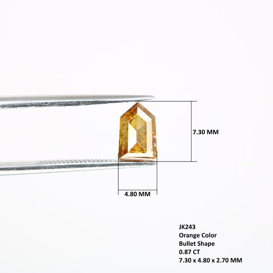 0.87 CT Bullet Shape Natural Orange 7.30 MM Loose Fancy Diamond For Designer Ring
