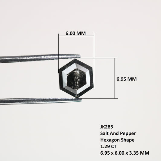 1.29 CT Natural Grey Galaxy Hexagon Shape Salt And Pepper Diamond For Her