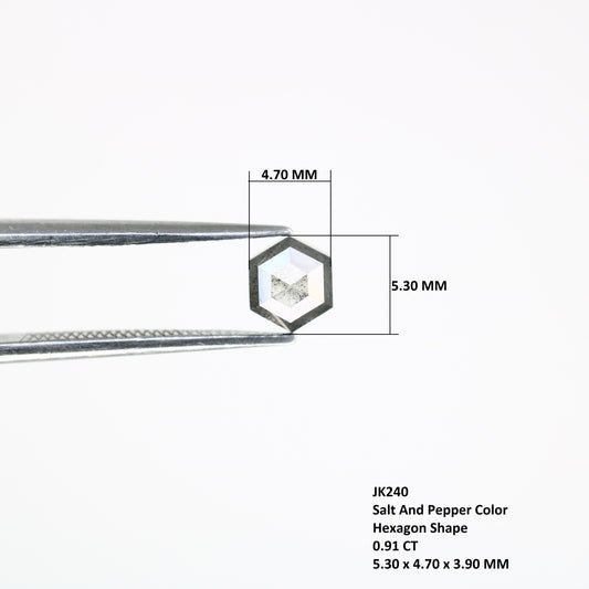 0.91 CT Hexagon Shape 5.30 MM Salt And Pepper Diamond For Engagement Ring