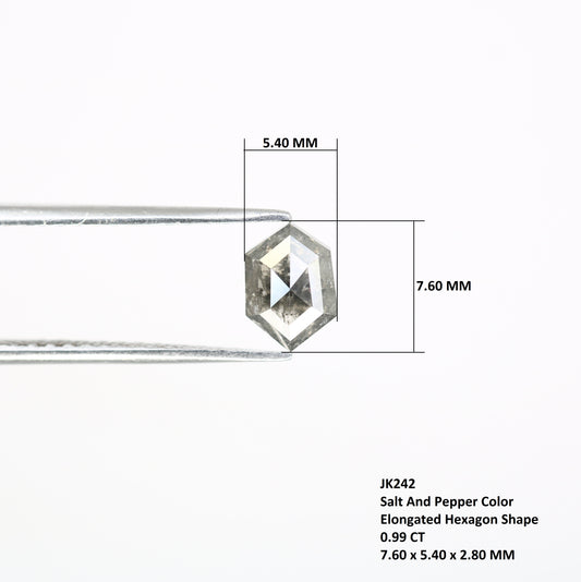 0.99 CT Salt And Pepper 7.60 MM Elongated Hexagon Shape Diamond For Engagement Ring