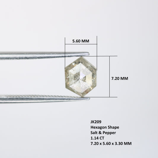 1.14 Carat Salt And Pepper Natural Loose Hexagon Shaped Diamond For Wedding Ring