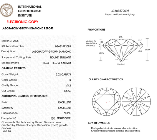 5.02ct Round Cut Lab Grown Diamond IGI Certified