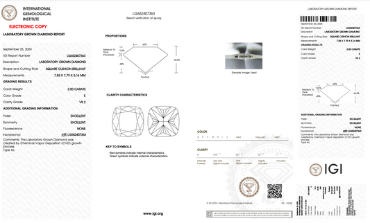 2.50 CT Cushion Cut Lab Grown Diamond E VS2 IGI Certified | Lab Created Diamond for Rings