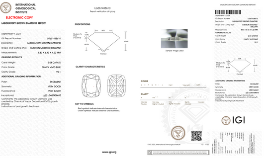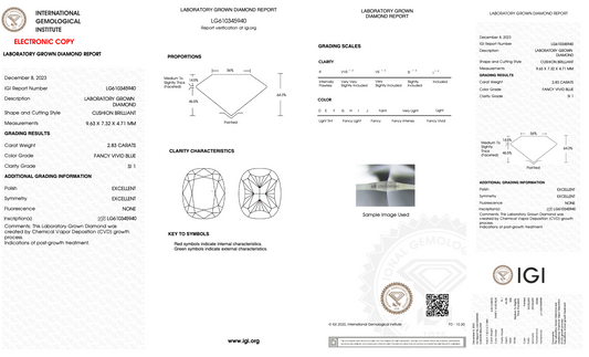 IGI Certified Cushion Cut Blue Color SI1 Clarity Lab Grown Loose Diamond