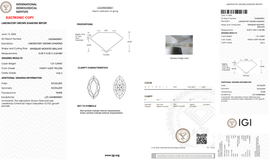 1.11 CT Marquise Cut Fancy Color Lab Grown Diamond | IGI Certified Loose Stone
