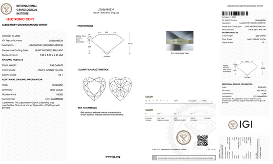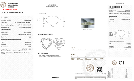 IGI Certified Heart Cut 2.50 Carat Lab Grown Diamond | Fancy Yellow Lab Grown Diamond for Engagement Ring