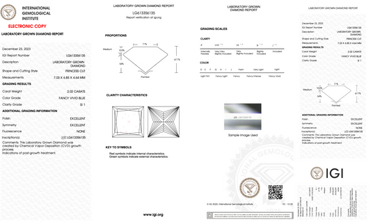 2 CT Princess Cut Lab Grown Diamond | IGI Certified Fancy Color Diamond