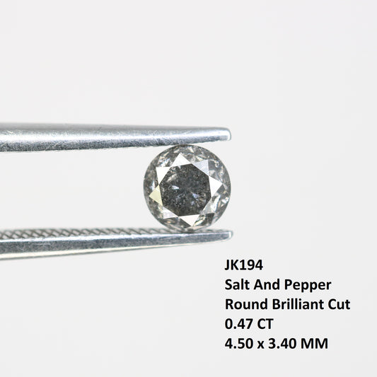 0.47 Carat Salt And Pepper Loose Round Brilliant Cut Diamond For Wedding Ring