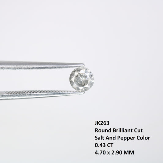 0.43 CT Round Brilliant Cut Loose Natural Salt and Pepper 4.70 x 2.90 MM Diamond for Engagement Ring and Artisan Jewelry Creation