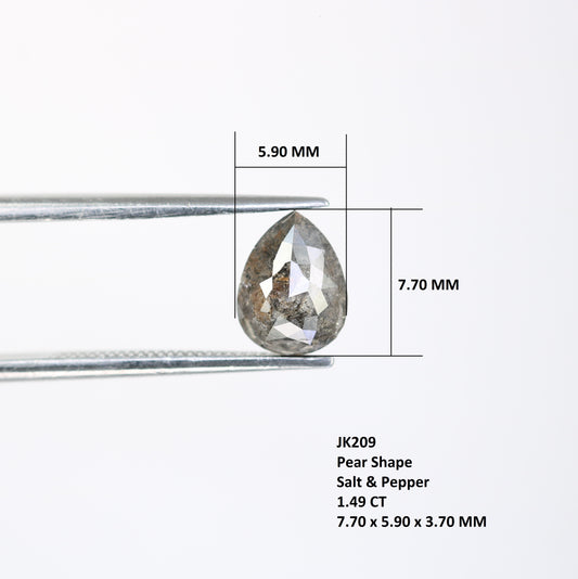 1.44 Carat Pear Shape Loose Salt And Pepper Diamond For Wedding Ring
