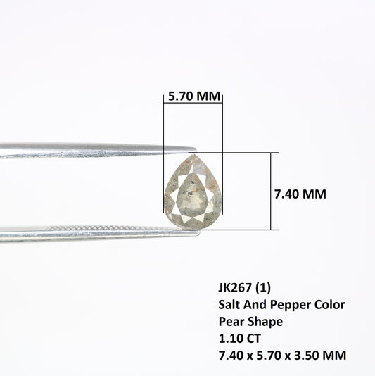 1.01 CT 8.20 MM Salt And Pepper Pear Shape Loose Diamond For Wedding Ring