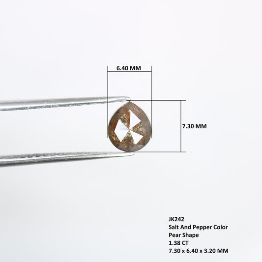 1.38 CT 7.30 MM Salt And Pepper Pear Shaped Diamond For Engagement Ring