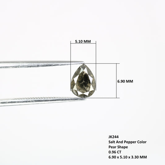 0.96 Carat Loose Pear Cut Salt And Pepper 6.90 MM Diamond For Promise Ring