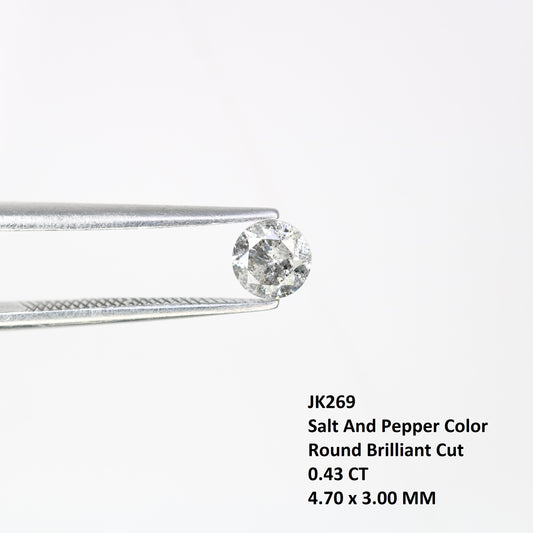 0.43 CT Loose Salt and Pepper Round Brilliant Cut Diamond for Wedding Ring and Custom Bridal Jewelry