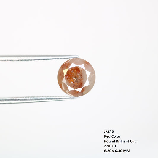 2.90 CT 8.20 MM Round Brilliant Cut Fancy Red Diamond For Engagement Ring with Certification