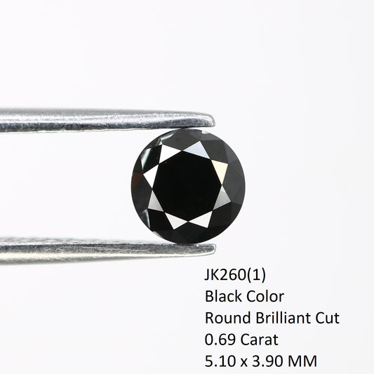0.69 CT 5.00 MM Round Brilliant Cut Black Loose Diamond For Wedding Ring