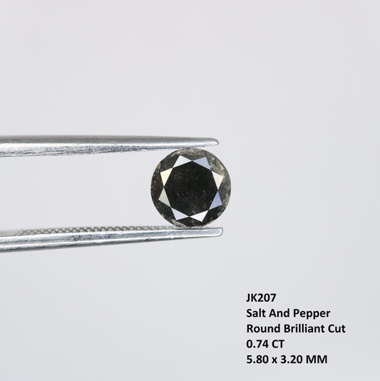 0.74 CT Salt and Pepper Round Brilliant Cut Diamond For Engagement Ring