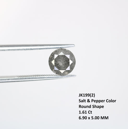 1.61 CT Salt And Pepper Round Brilliant Cut Diamond For Wedding Ring