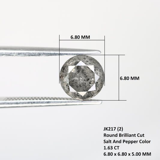 1.63 CT Round Brilliant Cut Salt And Pepper Diamond For Engagement Ring