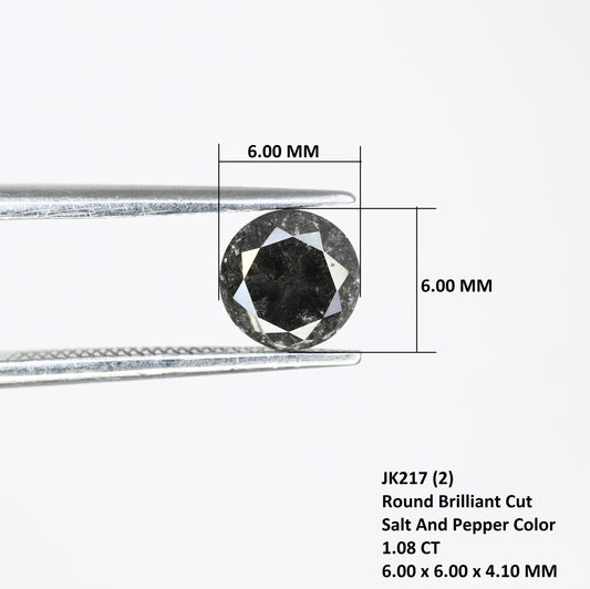 1.08 CT Salt And Pepper Round Brilliant Cut Diamond For Engagement Ring