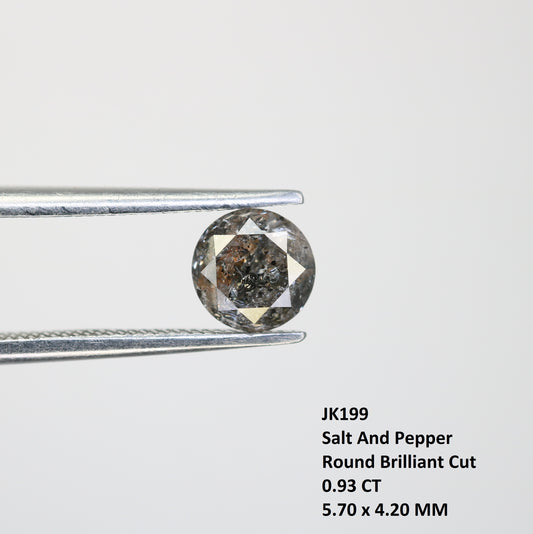 0.93 Carat Natural Round Brilliant Cut Salt And Pepper Diamond For Promise Ring