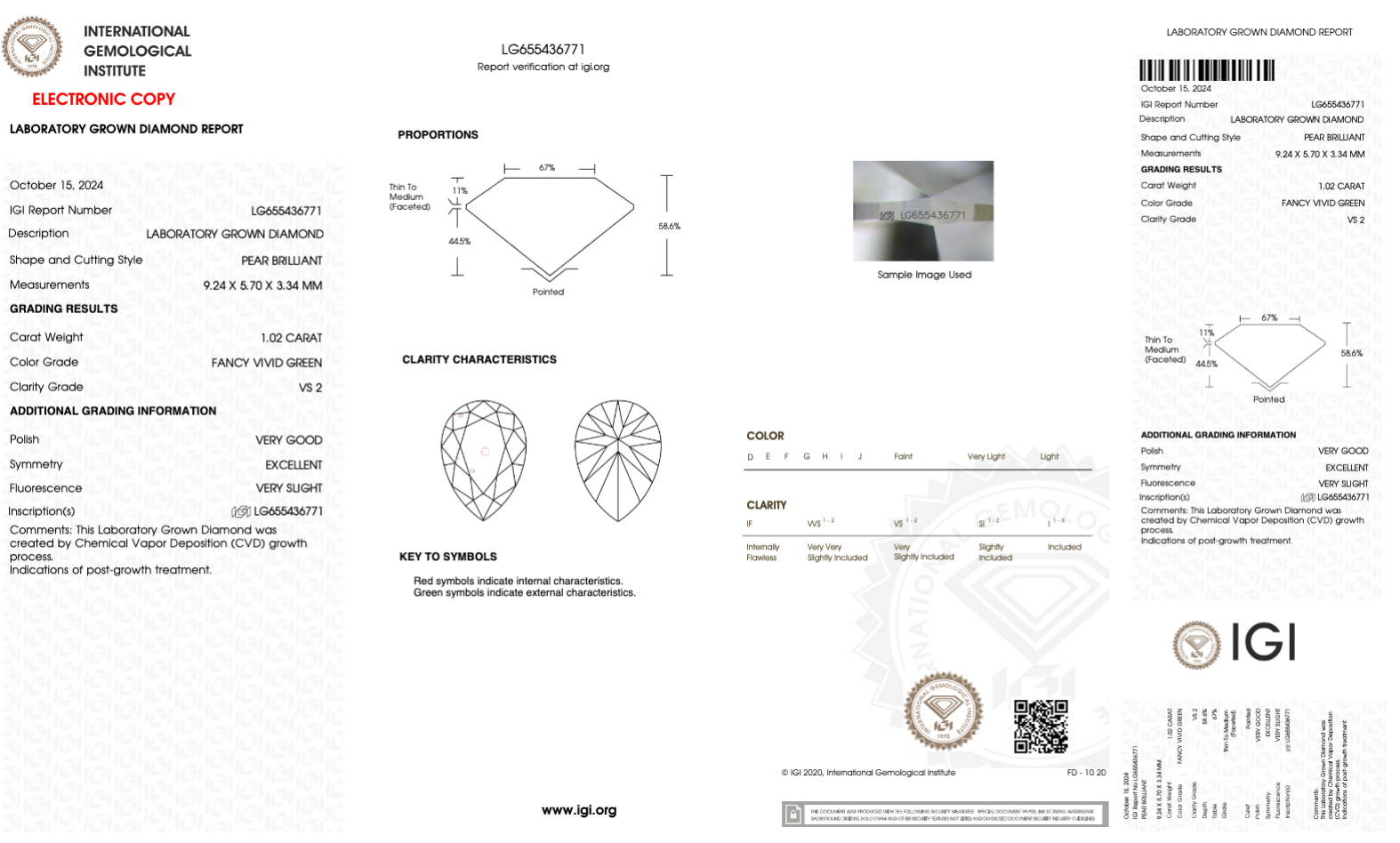 1.02 CT Pear Cut Fancy Green Lab Grown Diamond VS2 IGI Certified | Perfect for Jewelry
