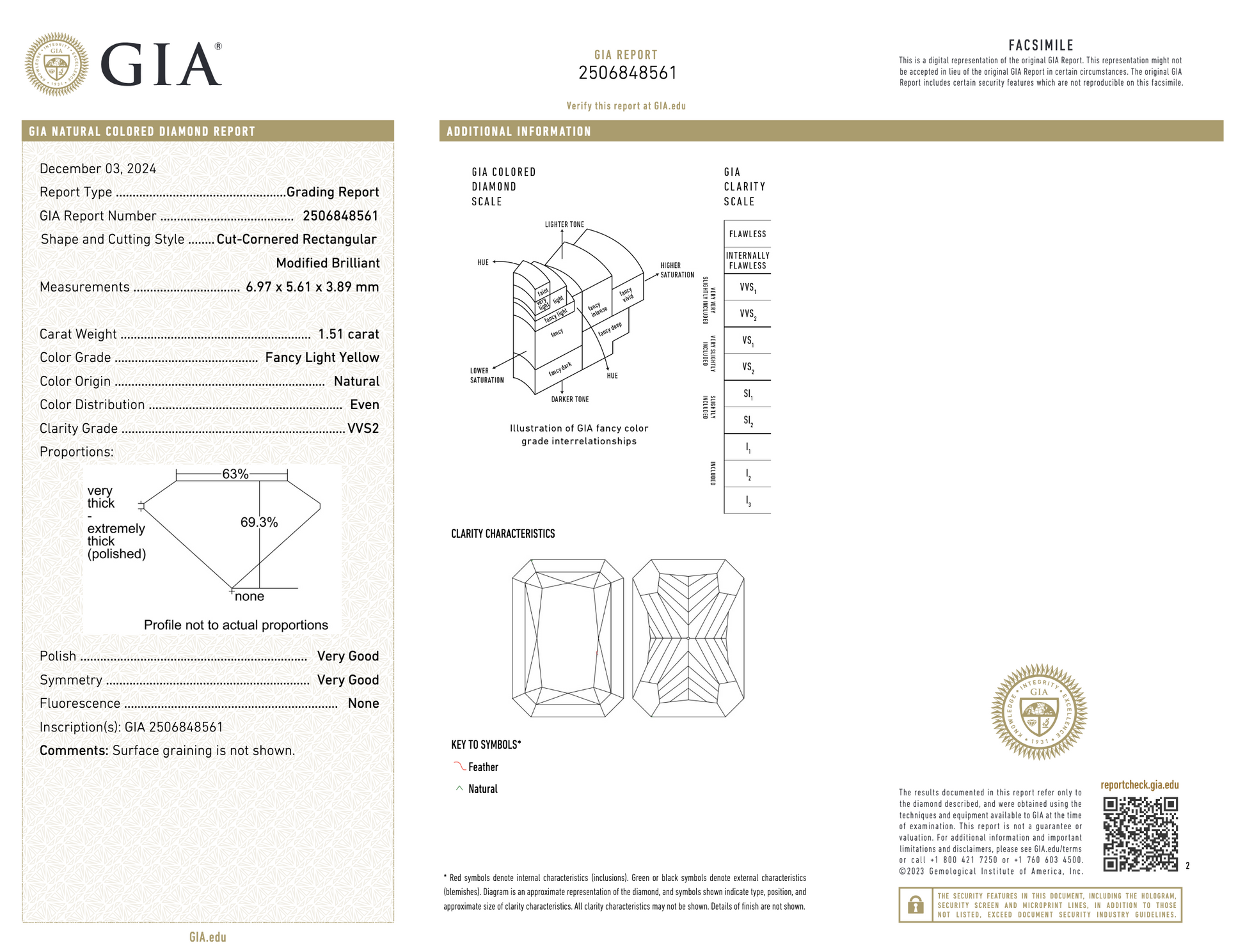 1.51 Carat Natural Radiant Cut Fancy Light Yellow Colour Grade VVS2 Clarity Diamond.