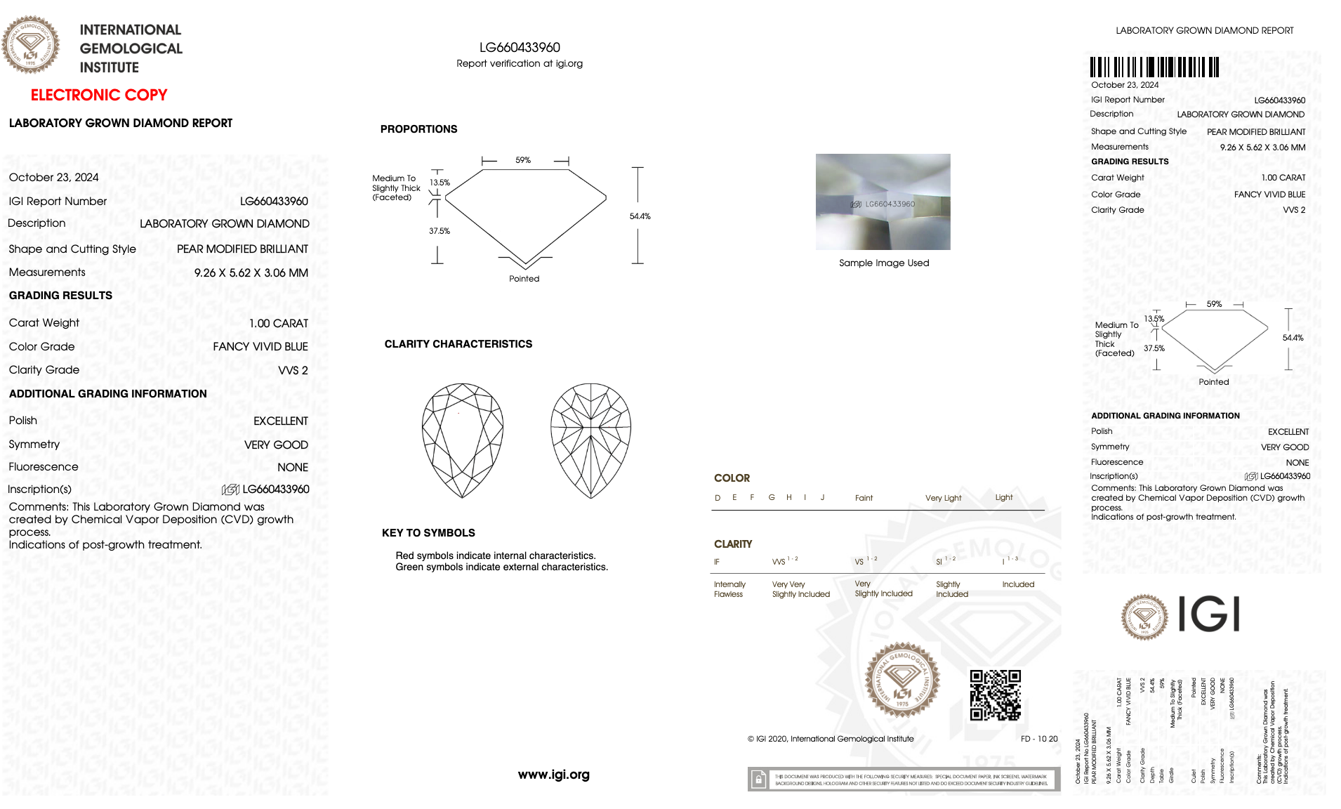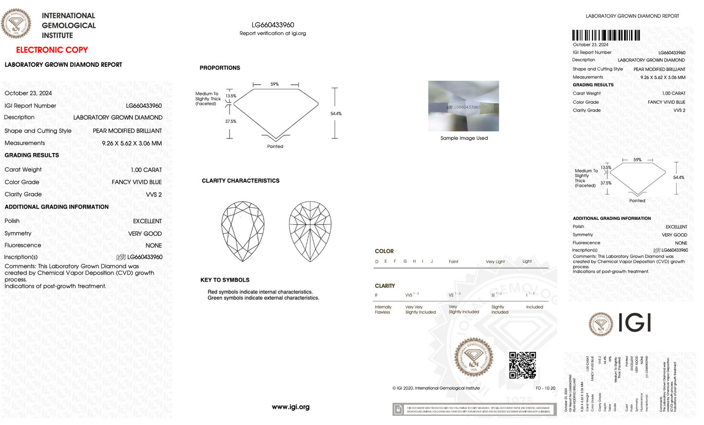 1 CT Blue Color Lab Grown Diamond | IGI Certified Pear Shape Lab Diamond