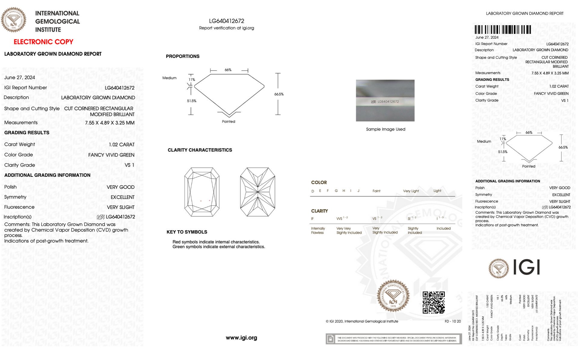 1.00 CT Emerald Cut Lab Grown Diamond Dark Green Color | IGI Certified | Lab Created Diamond for Rings