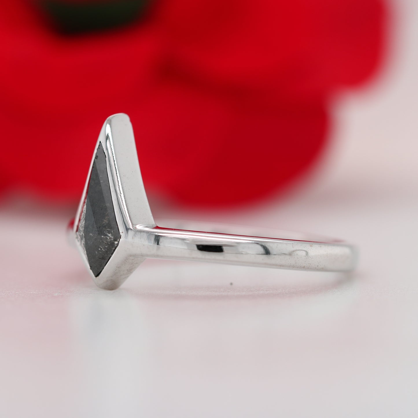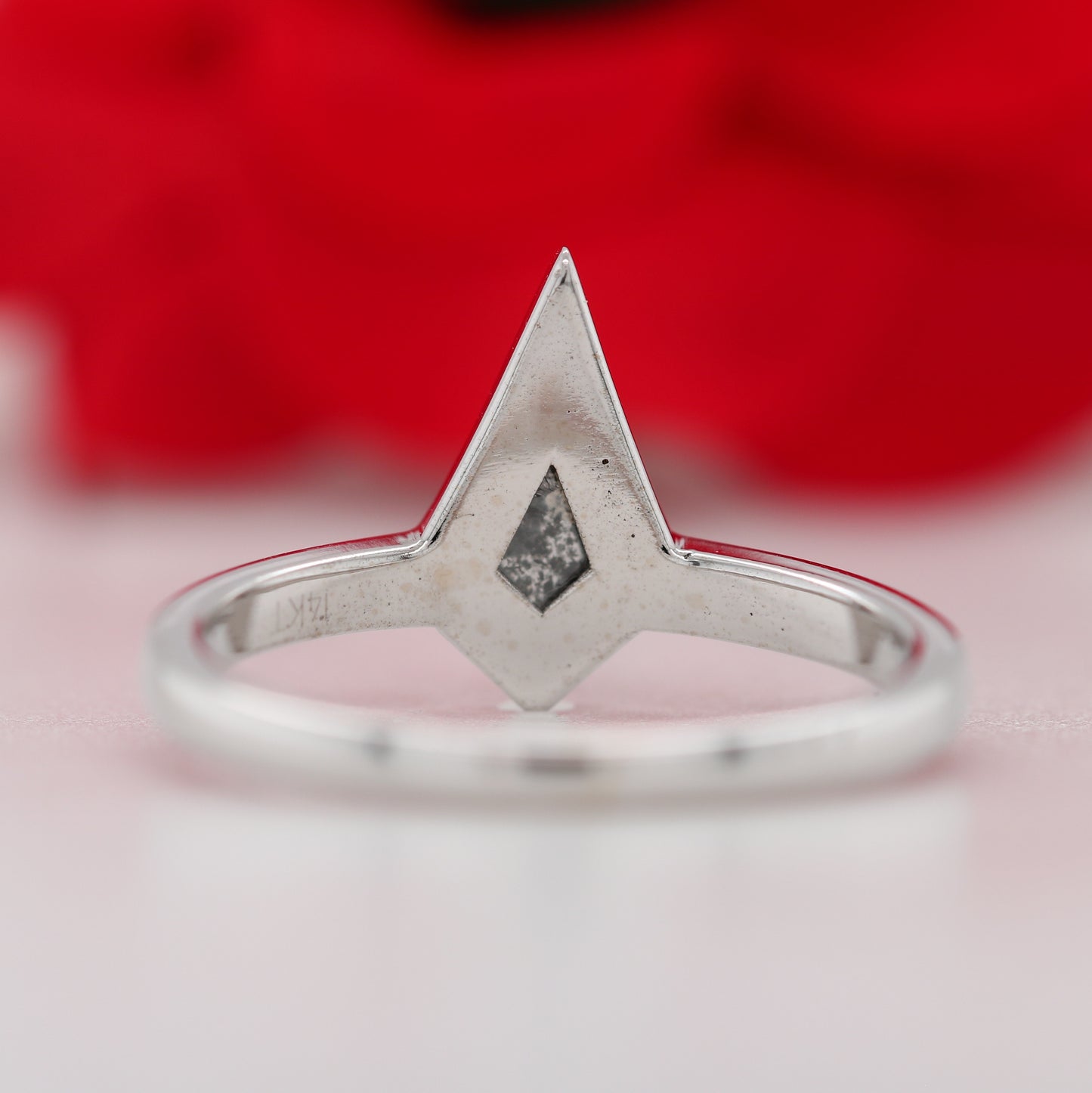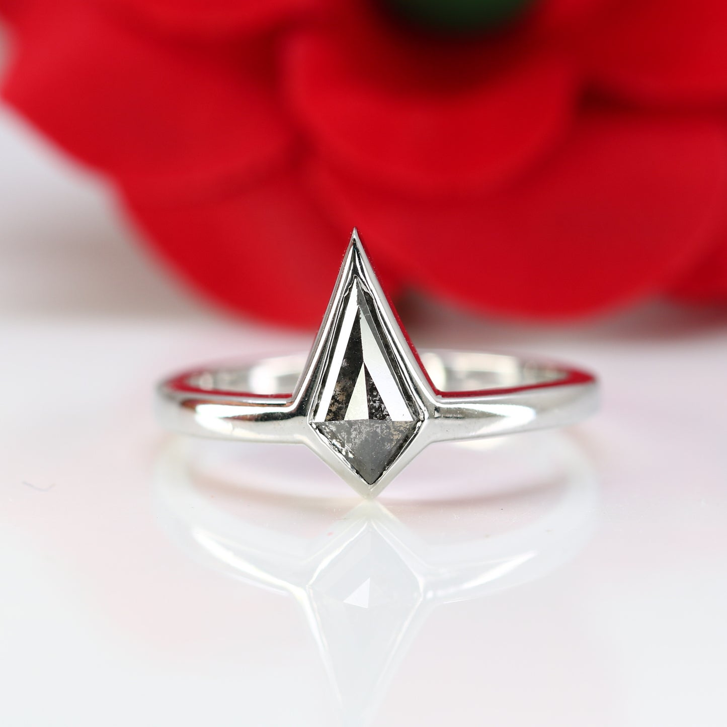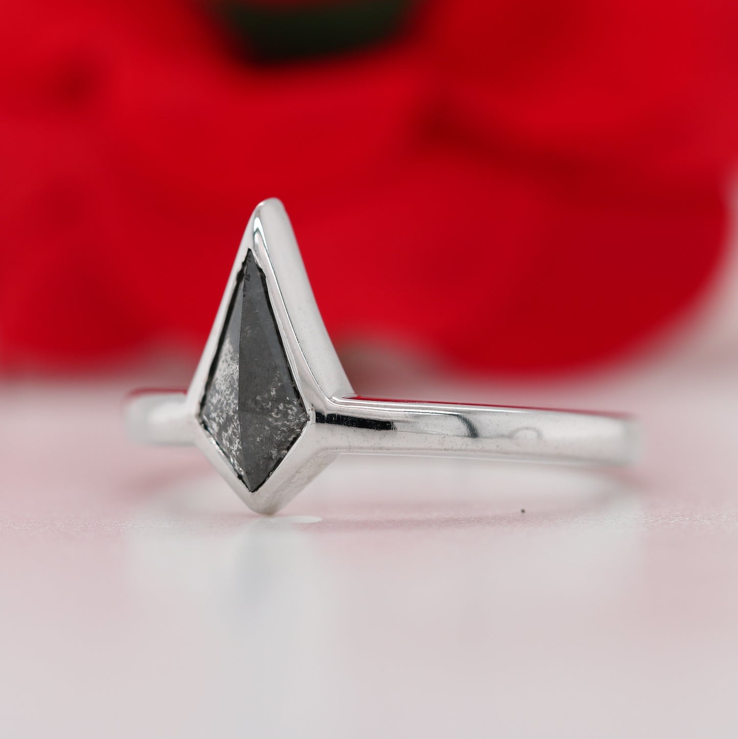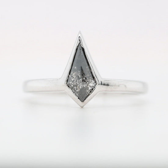 14K White Gold Kite Cut Bezel Set Salt And Pepper Engagement Ring