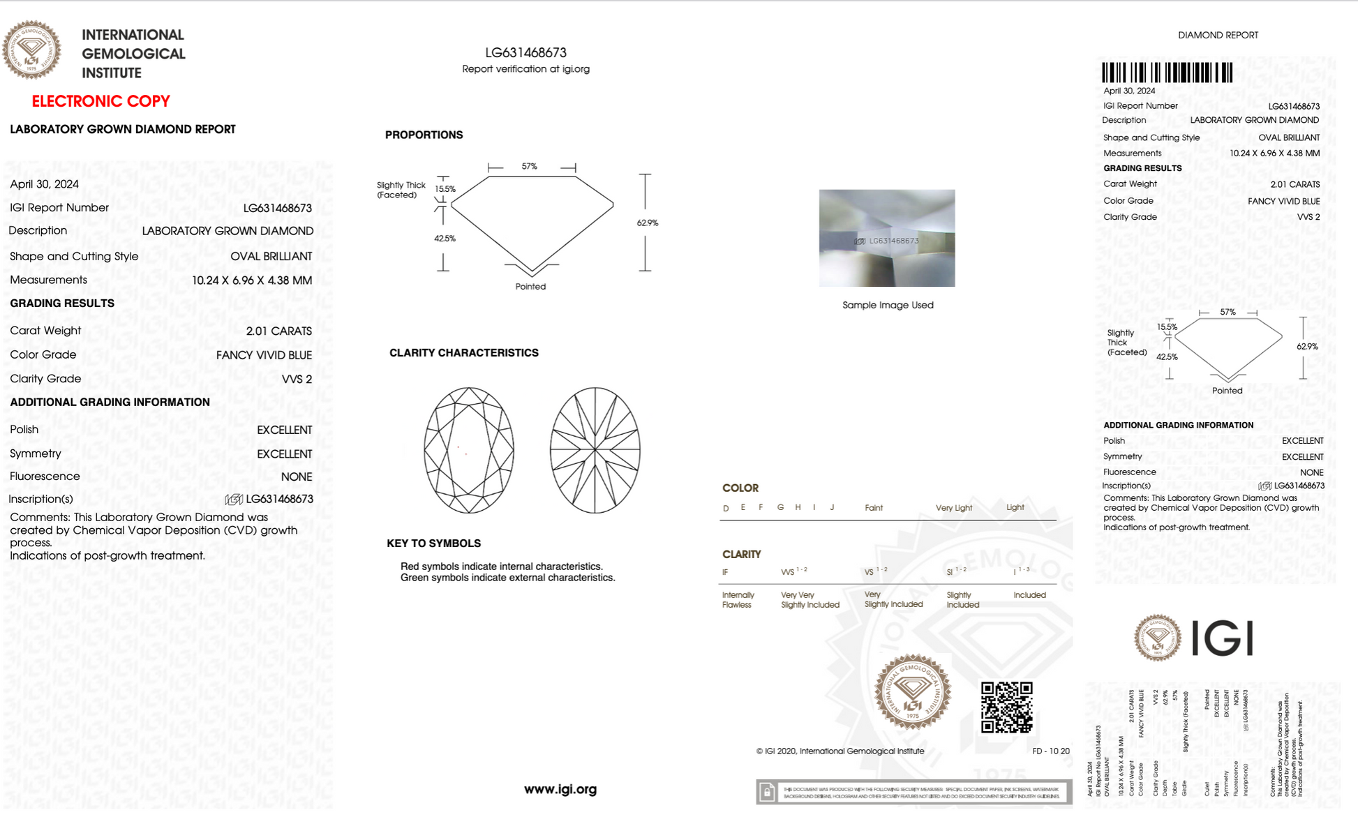2.01 Carat Fancy Vivid Blue Oval Cut Lab Grown Diamond | VVS2 Clarity | IGI Certified Loose Diamond