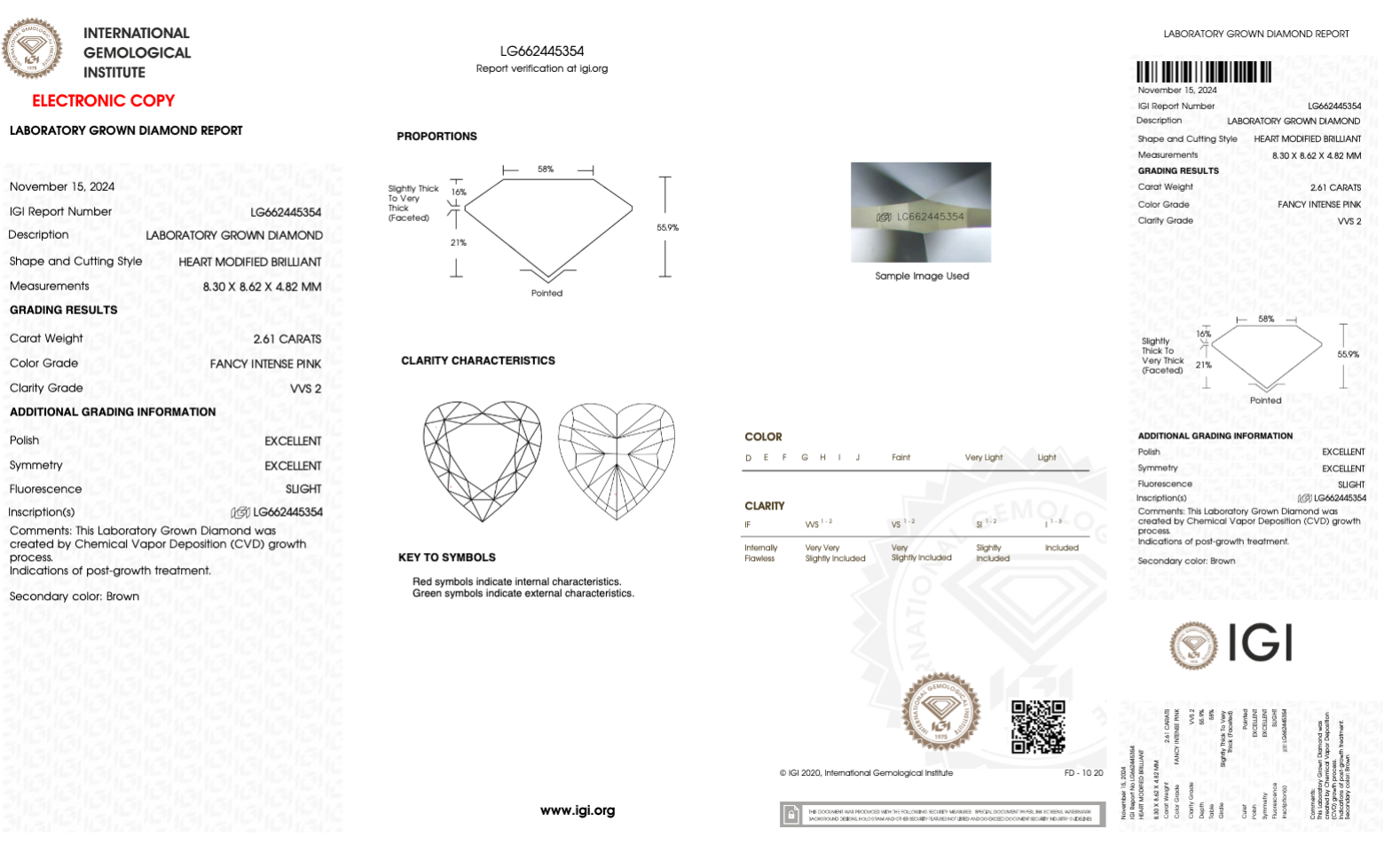 2.61 Carat Heart Cut Fancy Pink IGI Certified Lab Grown Diamond, VVS2 Clarity