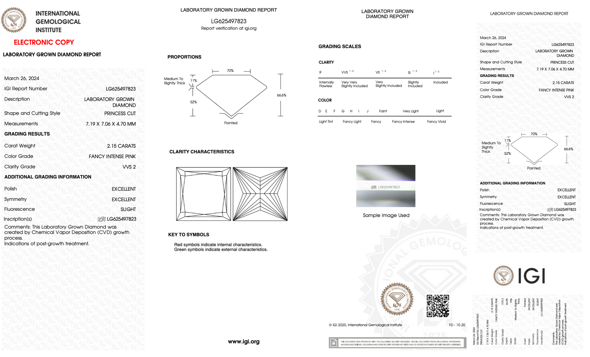 2 Carat Princess Cut Fancy Pink Lab Grown Diamond | IGI Certified Diamond for Engagement Ring