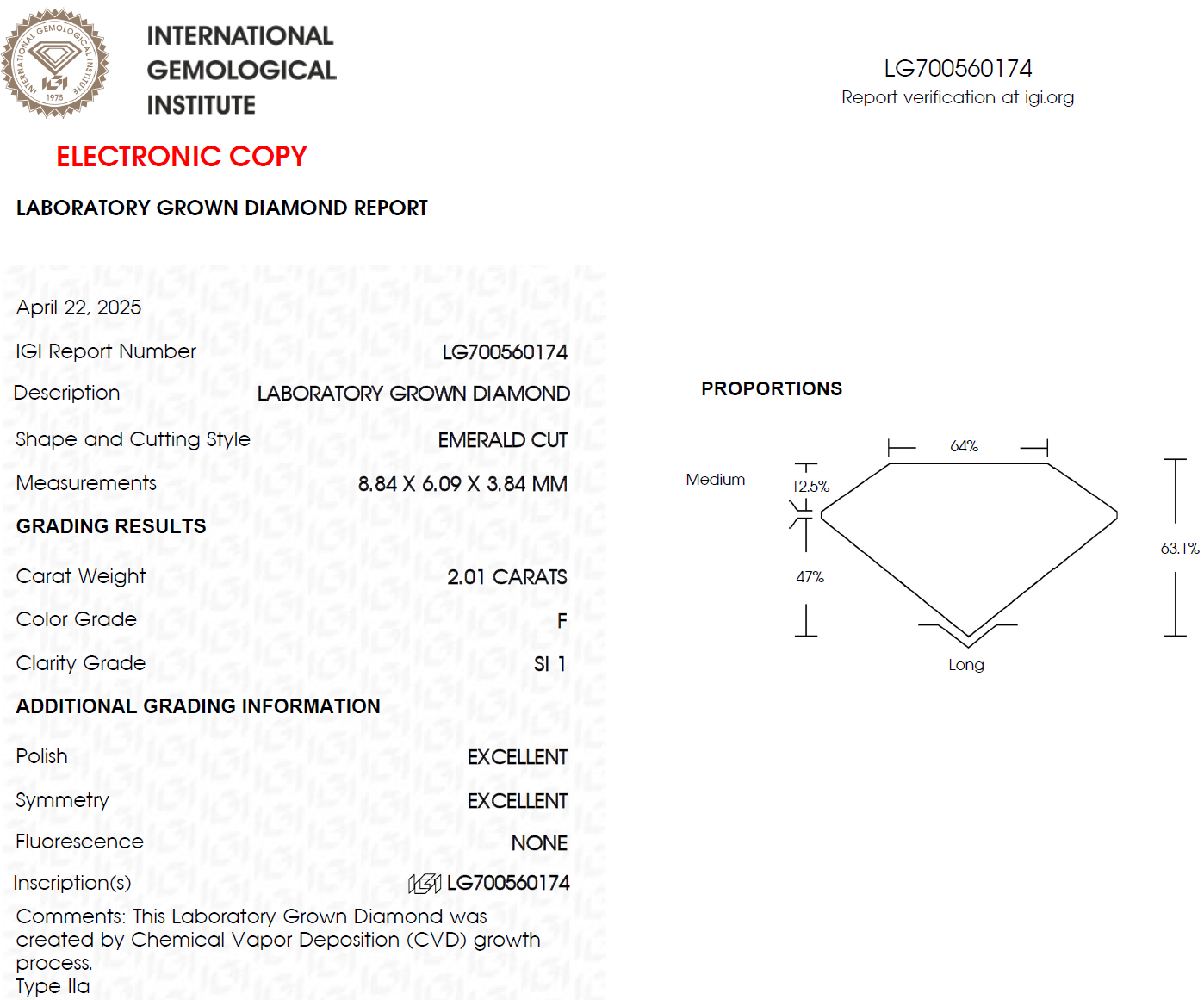 2 CT Emerald Cut Lab Grown Diamond for Engagement Ring | IGI Certified | Best for Anniversary Gift | Gift for Wife